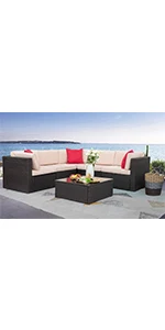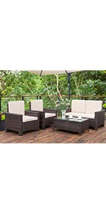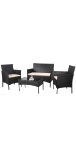 This Homall 4 pieces outdoor patio furniture set is coming with 2 single chairs, 1 double chair and 1 coffee table. It's made of high-quality steel frame, and covered with all weather PE rattan wicker, ensuring both durable and lightweight, without the bulkiness of traditional patio furniture. Its stylish and modern appearance, make it can blend well into different outdoor space. It's the excellent lounging choice for patio, porch, poolside, or garden area use.