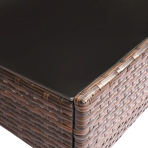 The black tempered glass top sits securely between the reinforced exterior wicker finish.