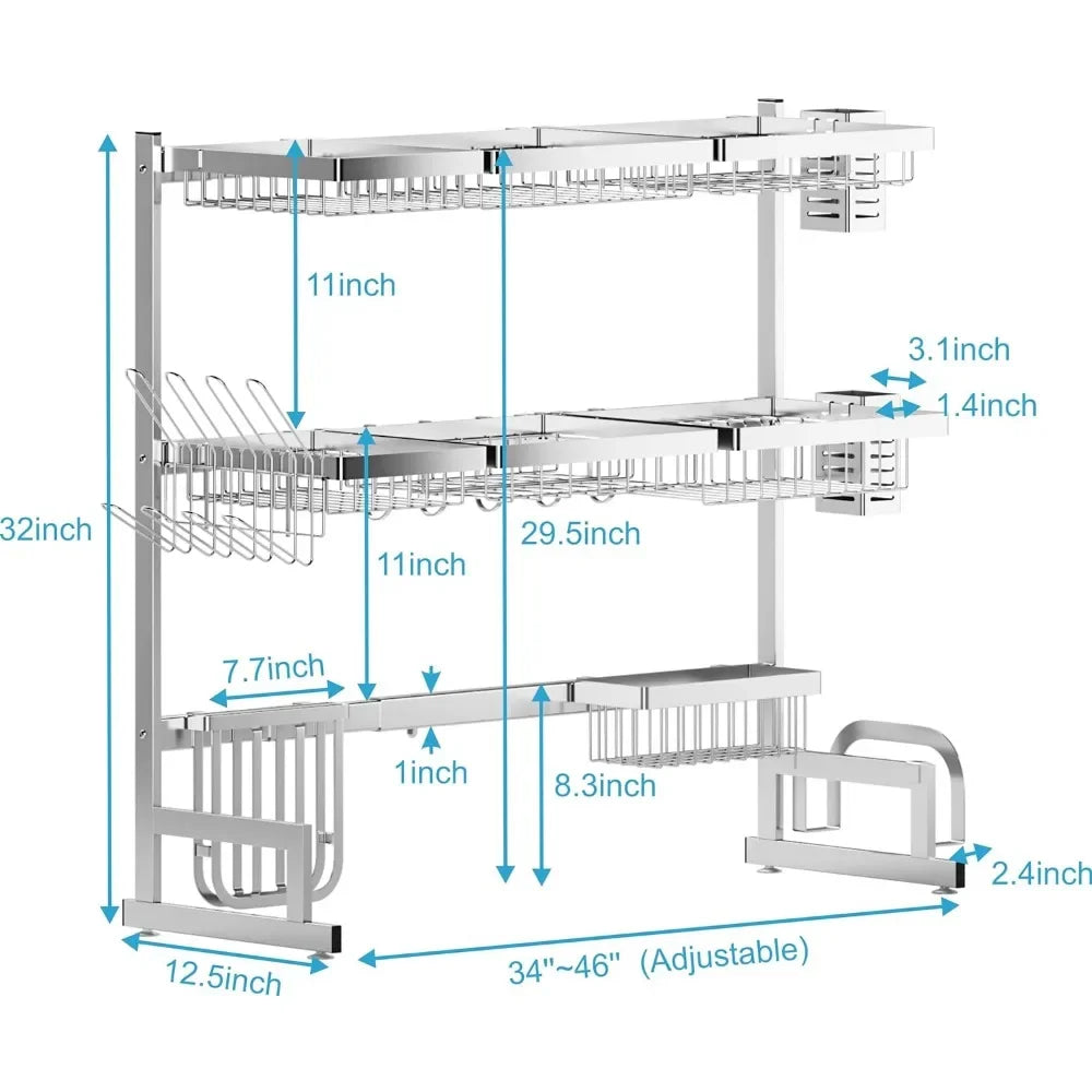 Adjustable Over Sink Dish Drying Rack 3 Tier