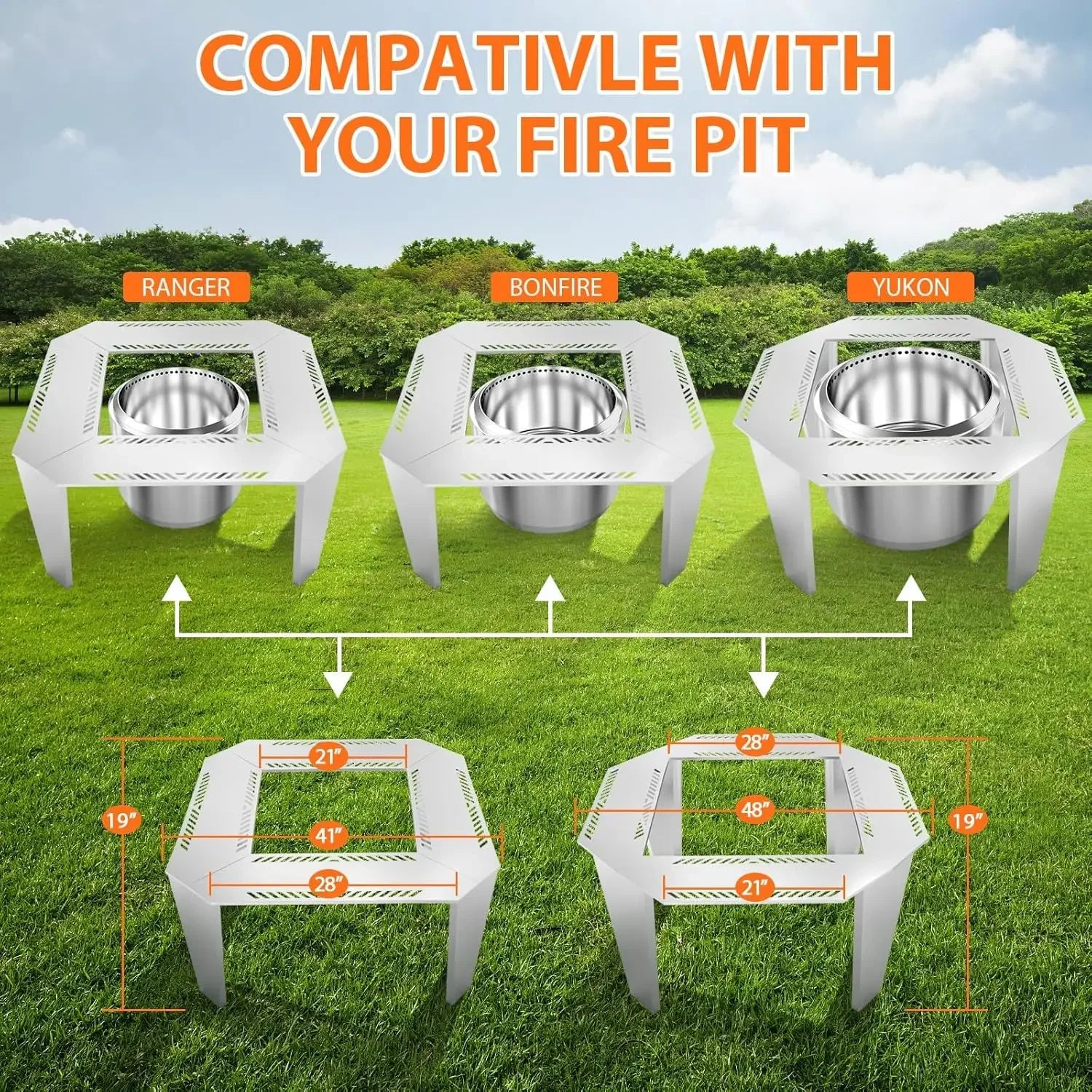 【Perfect Fit for Various Fire Pits - High Compatibility and Flexibility】- Fire Pit Surround Table with a 24" Inner Diameter, designed to fit a range of popular wood-burning fire pits, including Solo Stove Yukon, Bonfire, and Ranger, as well as TIKI BRAND smokeless fire pits. Our versatile table provides a seamless fit with configurable support brackets for maximum enjoyment, no matter the fire pit. Get more functionality and style around your fire pit at an affordable price!