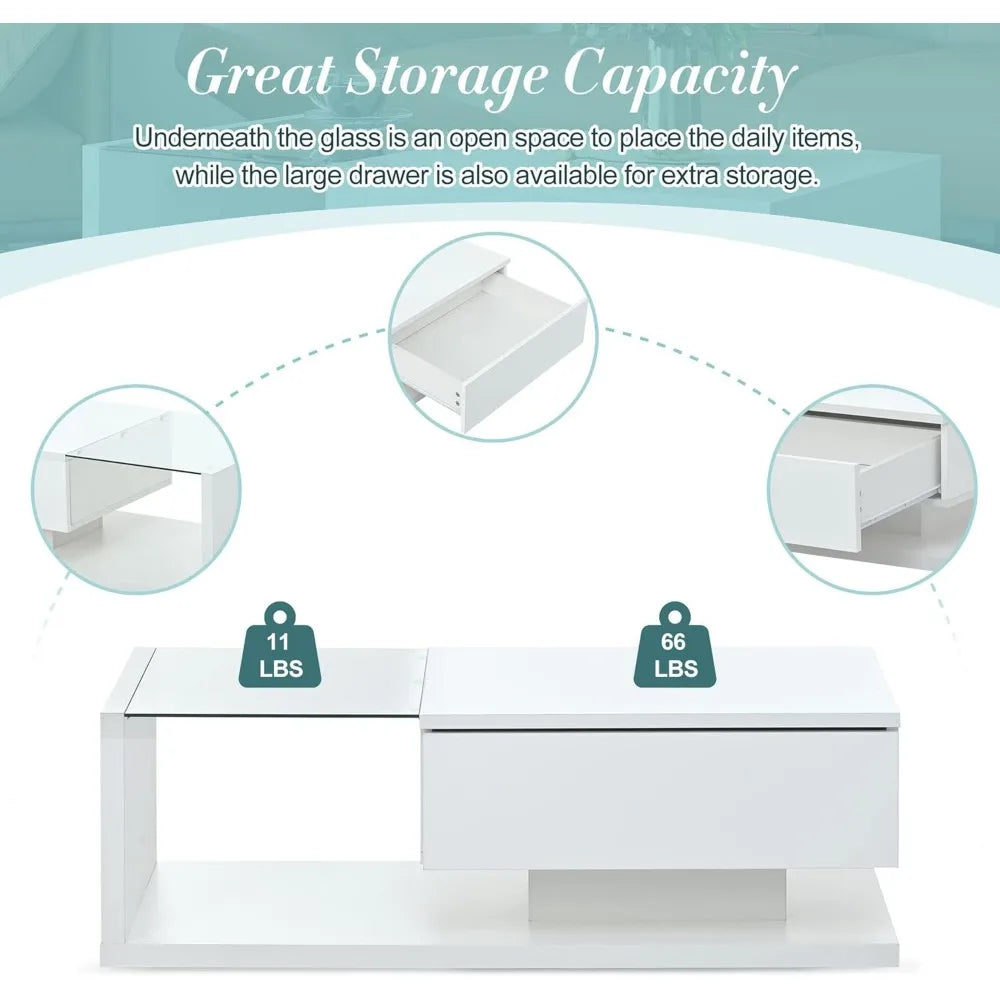 - [Modern Style] The perfect combination of wood structure with high gloss surface and tempered glass brings a warm and stylish touch to any living space.
