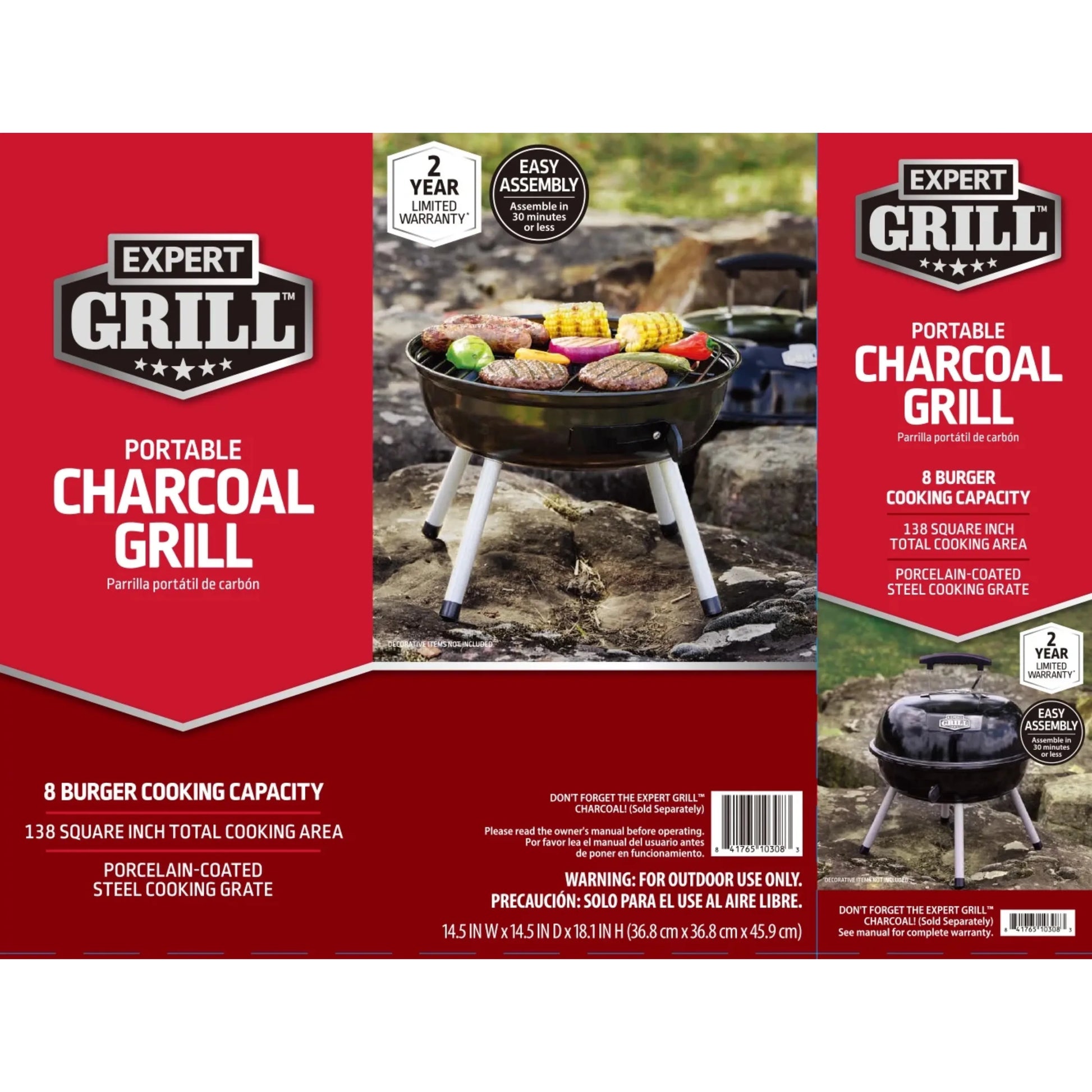 Expert Grill 14.5'' Steel Portable Charcoal Grill, Black, New