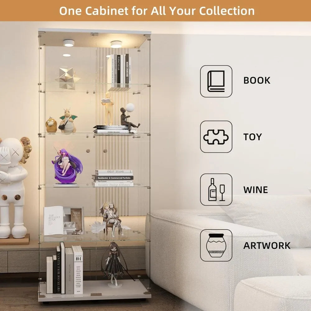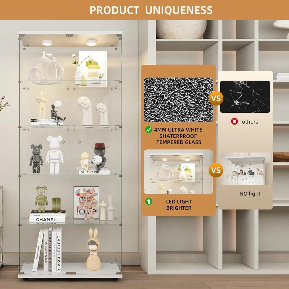 - Sleek Design: The Glass Display Cabinet features a sleek and modern design that will enhance the aesthetic of any living room, bedroom, or office. The double-door, five-shelf layout provides ample space to showcase your favorite items, while the white finish adds a touch of sophistication