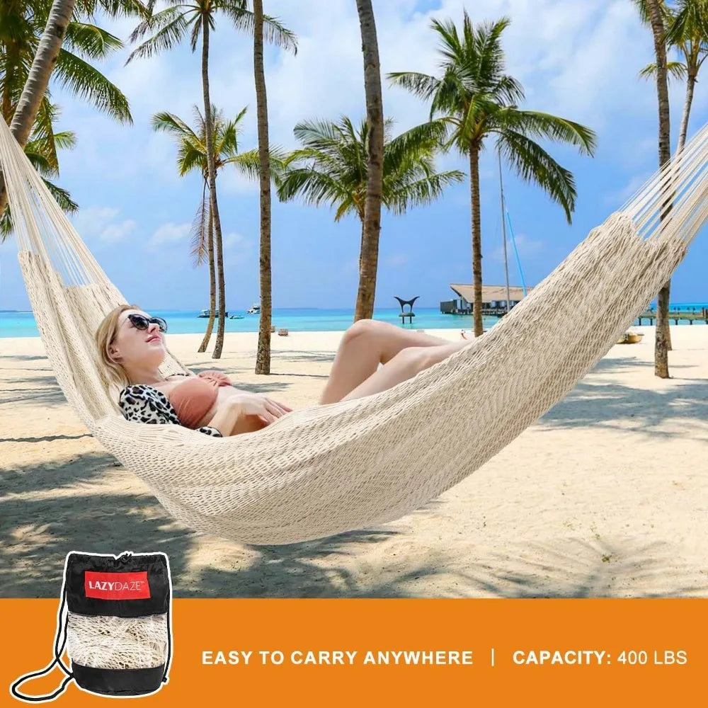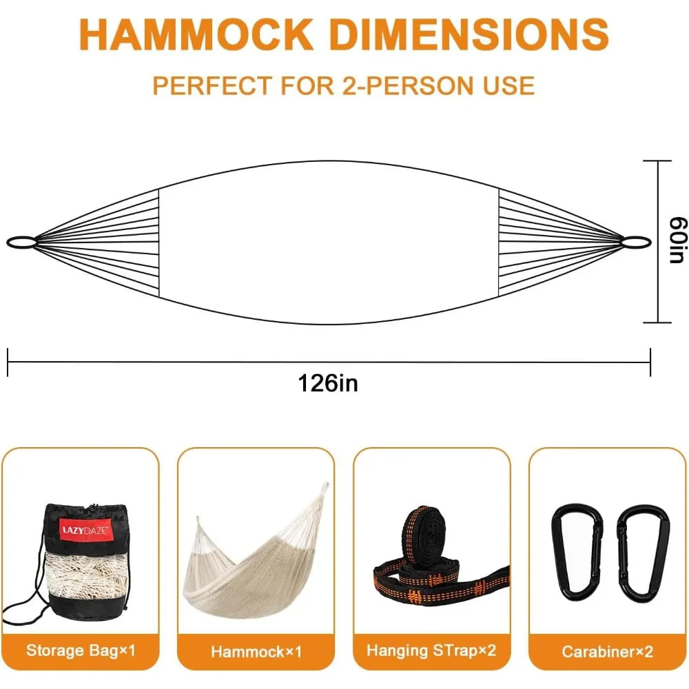 - Large Mayan Hammock Size: Maya hammock is hand-woven with softer cotton thread,126" W x 60 " D;bed size:78" W inches x 60 " D;weight capacity: 500 lbs;Suitable for 2 people
