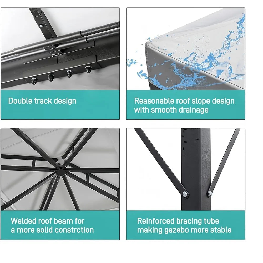 - 【Premium Galvanized Steel Construction】: Our outdoor gazebo tent a sturdy and light weight design with its Galvanized Steel column and Galvanized Steel beam, ensuring durability while remaining rust-proof. The roof is double top vented for optimum airflow and comfort during periods of strong wind.