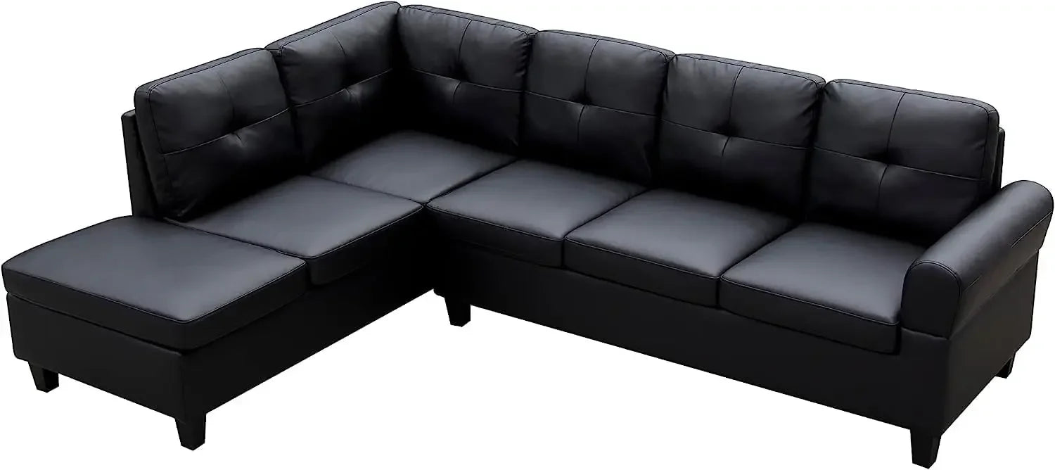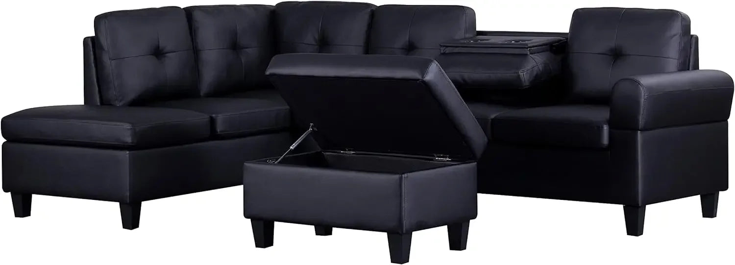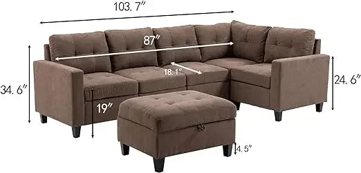 Living Room Furniture Sets,Reversible L-Shaped Sectional Sofa with Fabric Left Chaise,Storage Ottoman,Upholstered Coner Couch