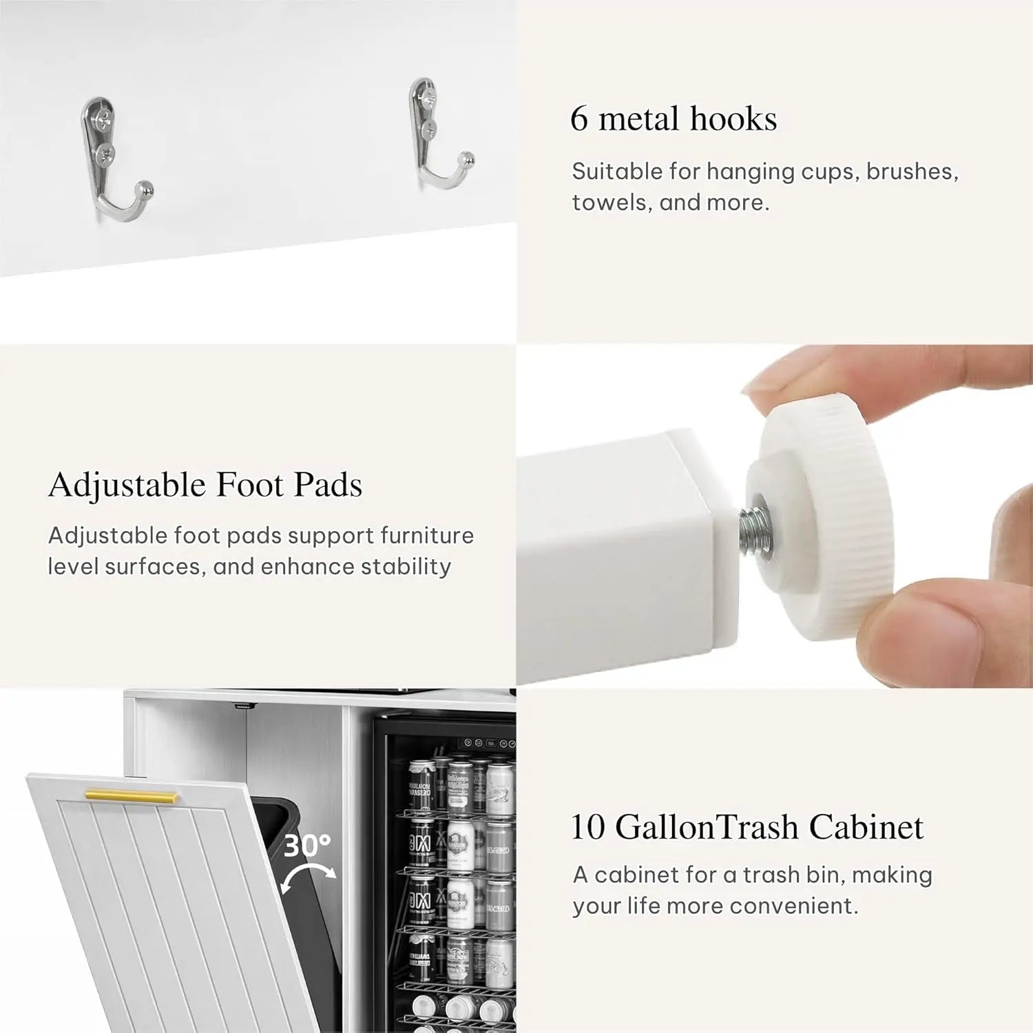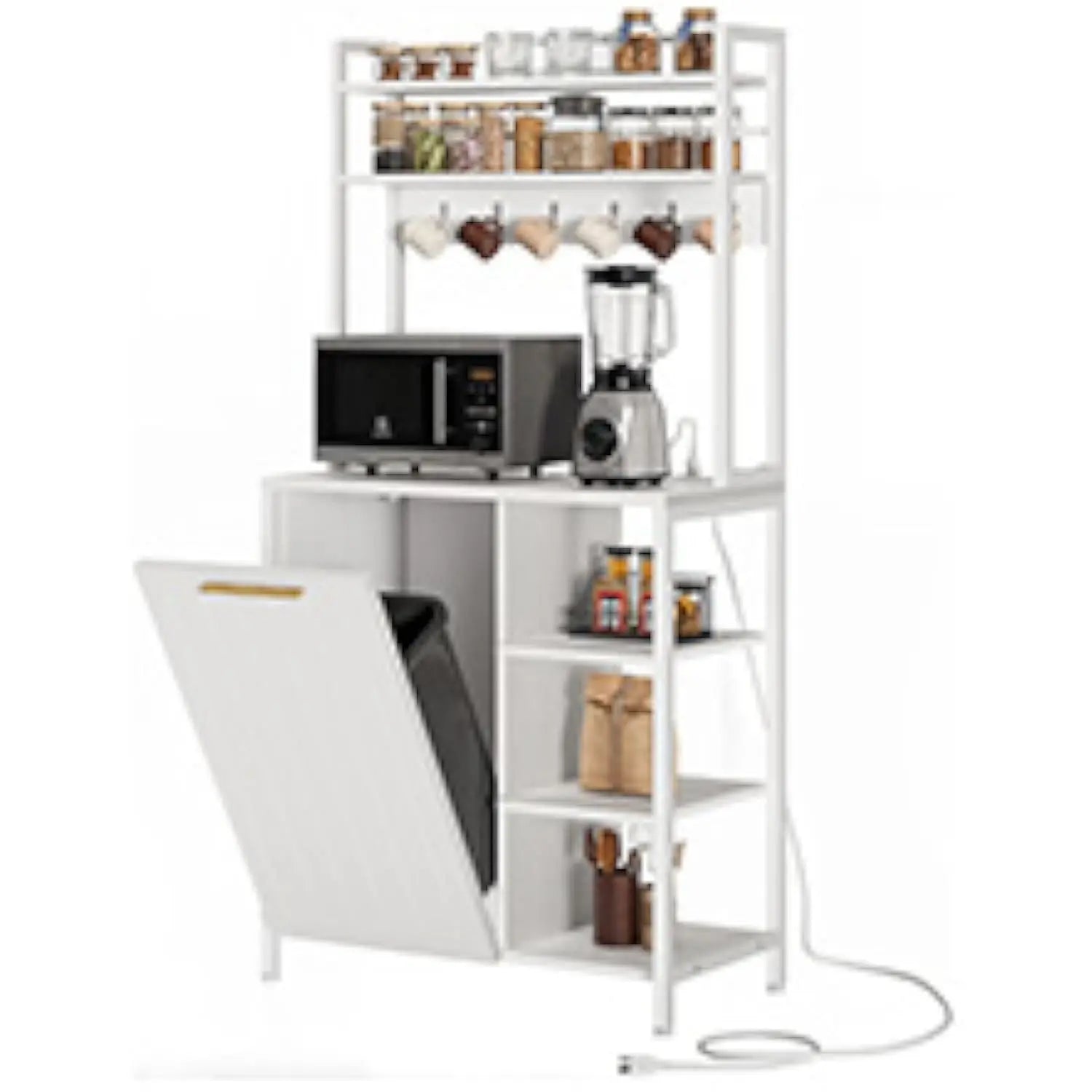- Trash Can Cabinet Design: On the left side of this bakers rack is tiltable trash can storage space that fits a 10-gallon trash can for quick cleanup on the countertop or in the kitchen. Please note that the trash can is not included