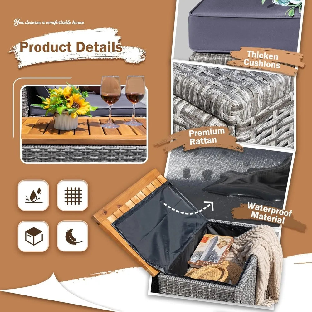 - Space-saving Design:When you are worried that the activity area is too small, the footstool of rattan daybed can be pushed under the sofa, and the footstool and two small tables can be used as storage boxes,a lot of things can be stored in it ,saving a lot of storage space