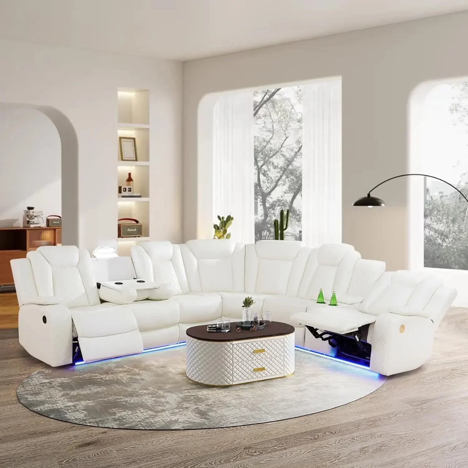 - - GEBADOL power reclining sectional sofa provides the great comfortable sitting experience with breathing leather upholstery, this living room furniture set made of strudy solid wood frame and embedded spring system which is bulit for long time using.